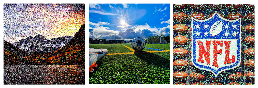 I have little experience in Photoshop, so this was a challenge for me. Understanding how to set the parameters and the background took time but once I understood how to crop images outside of the main document it was not too challenging. Once I set the three photos properly, I began to fiddle with the filtering. Rendering in a random tree was fun, but then I started to use other options. I used the Mezzotint option to make the picture of the Rocky Mountains, my favorite vacation, more like a traditional portrait done pixel by pixel. I then used the Facet filter option to make the soccer photo more defined and lifelike, a sport I played my entire life. Finally, I used the Pointillize option on the photo of the NFL, my favorite sport to watch and cover, to make it appear fuzzy and different.