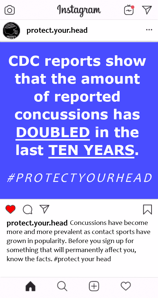We kept it simple with our concussion message. For the Instagram formatted post, we simply included a factoid that has the right amount of simplicity and shocking awareness needed to be shared. On top of that, we included a hashtag that allows users and viewers to share the message far and wide. It was as simple as overlapping images. The logo was harder to construct, but thanks to some tireless efforts by Xavier, we managed to make it look as good as it does. The cracked helmet with the exposing brain is the perfect message to share in a social awareness push against concussions in the NFL.